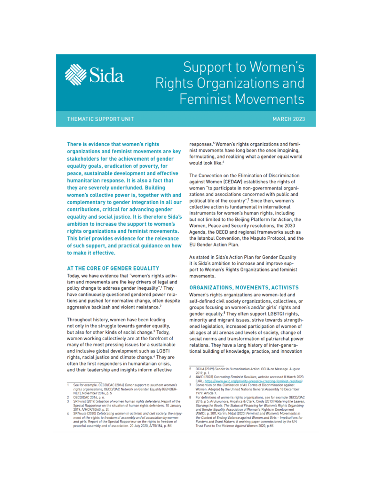 Support to Women’s Rights Organizations and Feminist Movements, from the Swedish International Development Cooperation Agency (Sida) (2023)