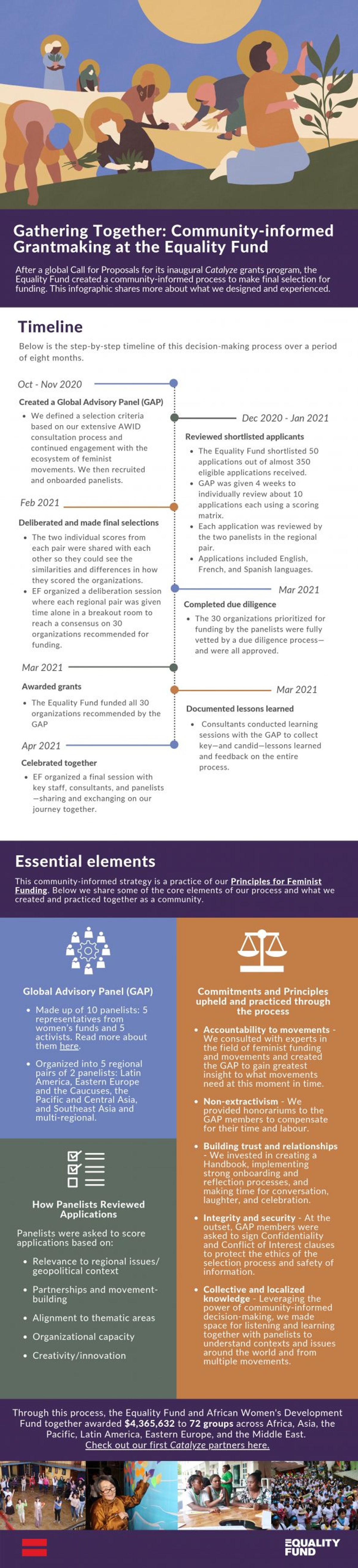 The following infographic outlines our step-by-step timeline—unpacking how we implemented our first participatory grantmaking process and highlighting the key elements and principles needed to deliver it in line with our feminist values.
