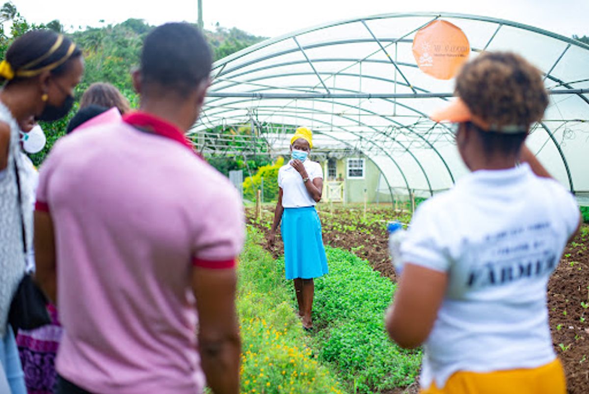 On February 25th 2022, WVL-Caribbean grantee partner Helen’s Daughters hosted a visit by the French Embassy to the OECS and Barbados and Alliance Francaise St. Lucia to experience “In the Eyes of a FarmHer”. According to Ms. Keithlin Caroo, founder of Helen’s Daughters, “In the Eyes of a FarmHer” was conceptualized to showcase female farmers in a way that was never done before. Invited guests had the opportunity to learn more about the perspectives and experiences of women in agriculture. During their visit, guests were treated to a spoken word performance, a farm visit, a sample market, and an authentic St. Lucian meal, with every single aspect coming directly from the hands of a FarmHer.